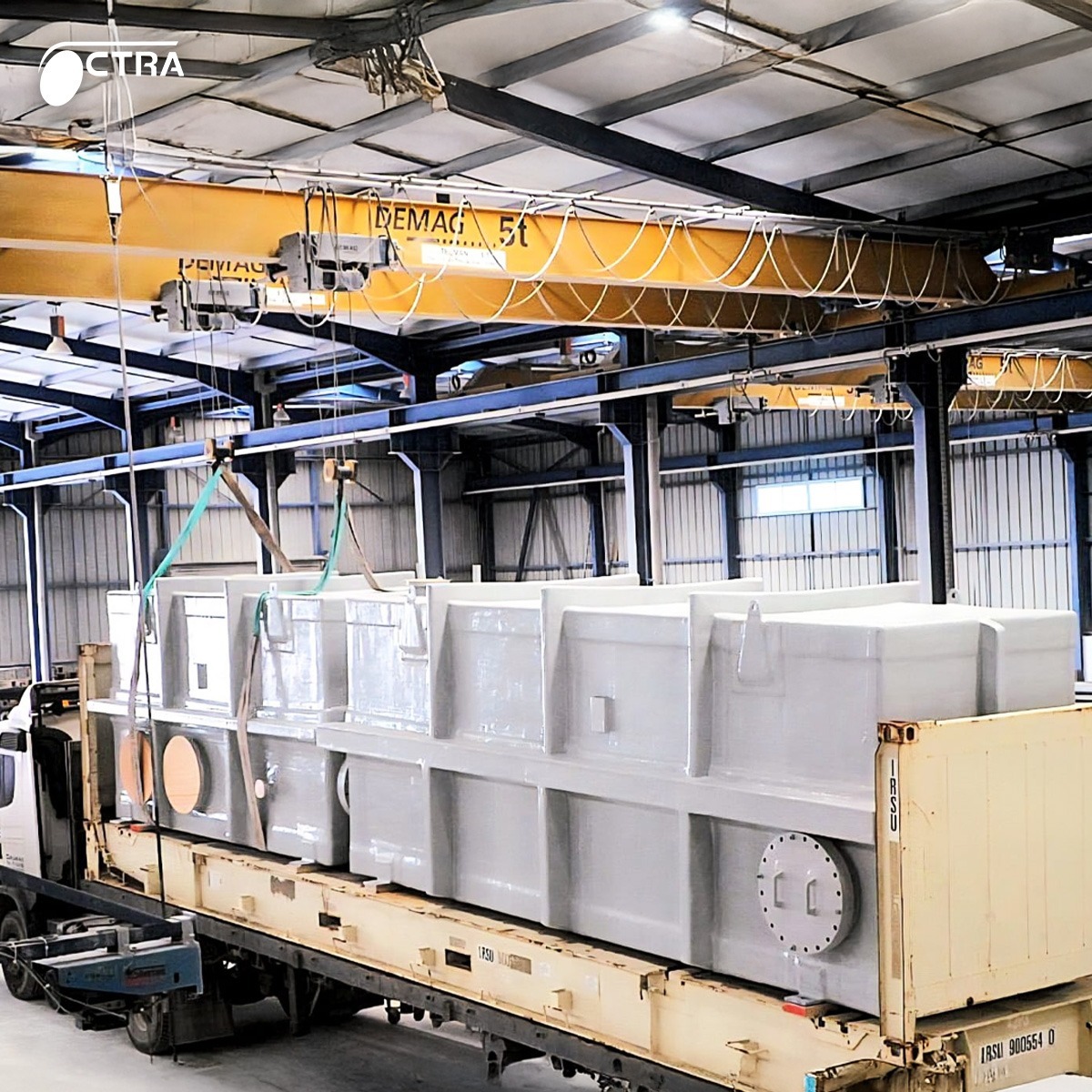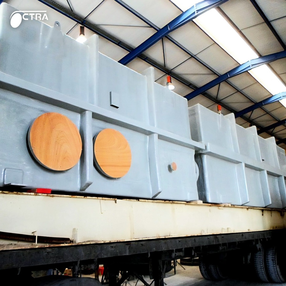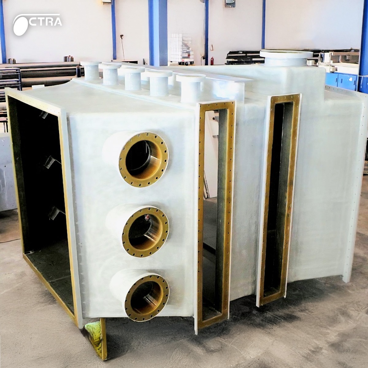 Industrie lourde Dans l’industrie de process, chaque installation impose ses propres contraintes. C’est pourquoi les équipements doivent être entièrement conçus sur mesure. Chez CTRA, cette exigence se traduit par la fabrication d’équipements composites de grande dimension, adaptés aux réalités opérationnelles de nos clients. En images : demi-bacs massifs, gaines de process et systèmes de pulvérisation, représentant plusieurs tonnes de matériaux et une ingénierie de précision. Des réalisations qui illustrent une conviction simple : dans l’industrie, la performance commence par le sur-mesure.